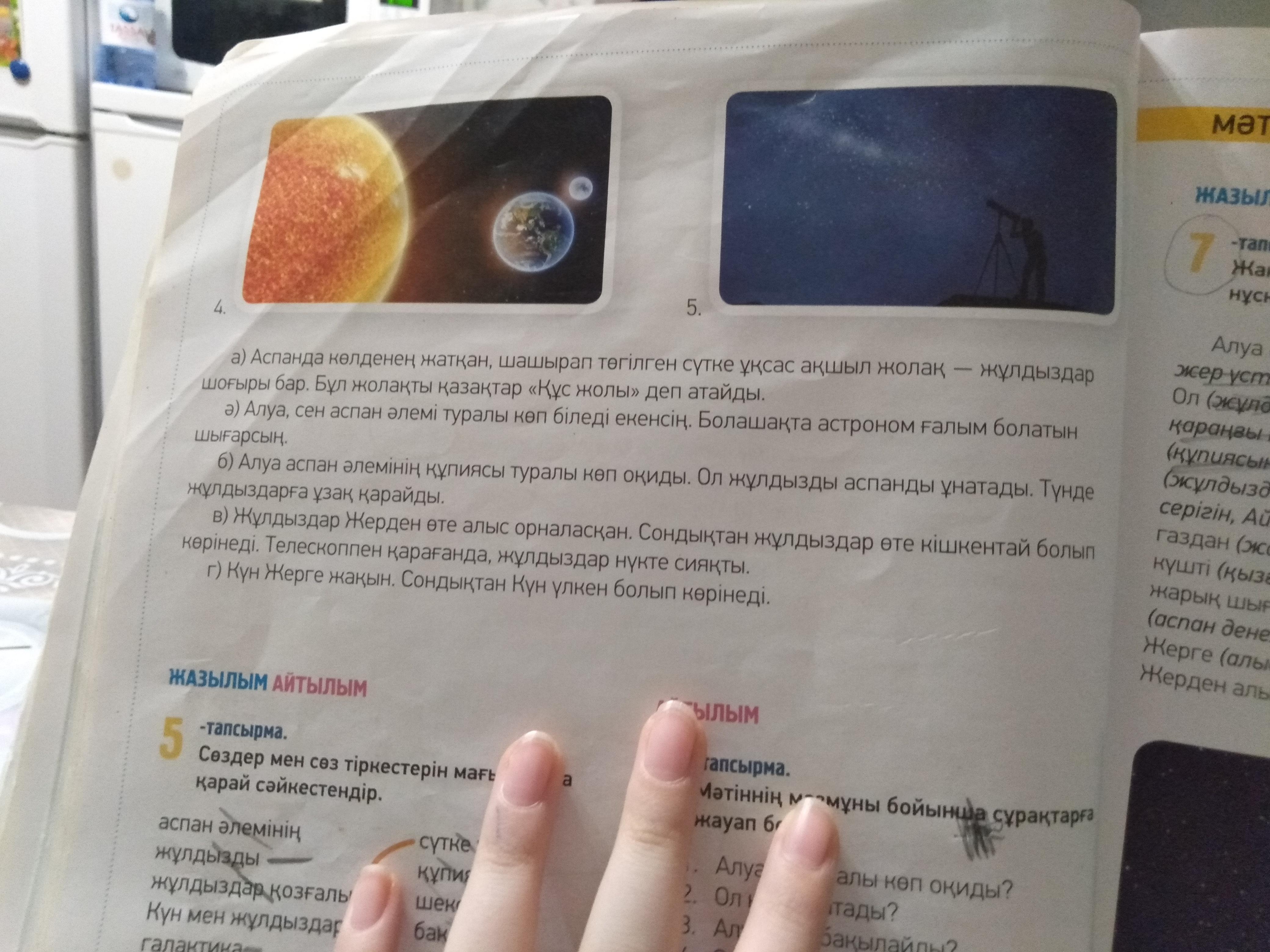 2. ә). Алуа сен жұлдыздар туралы көп біледі екенсін. Болашақта астроном ғалымы болатын шығарсын.