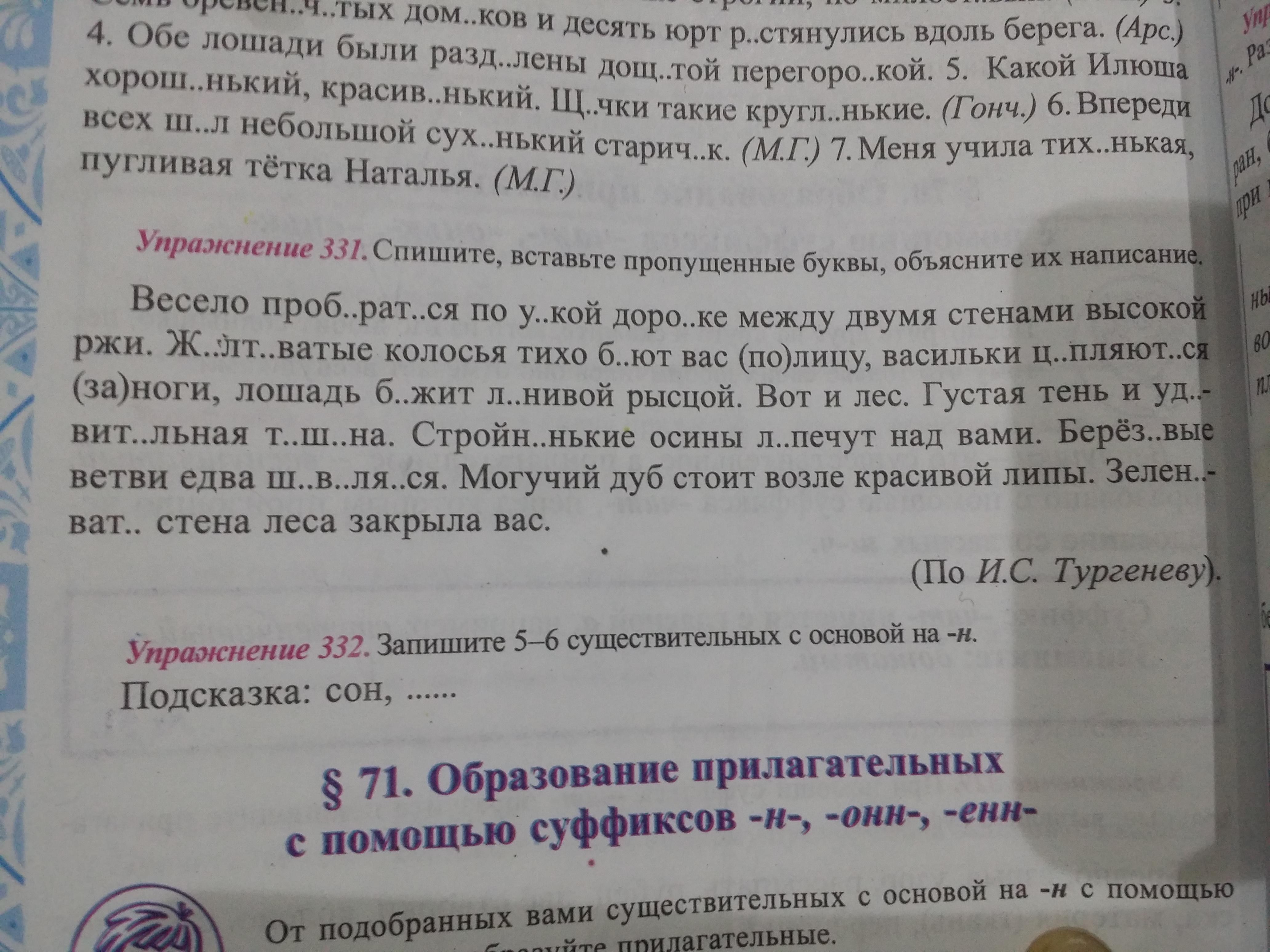 Весело пробираться по узкой дорожке между двумя стенами высокой ржи.Желтоватые колосья тихо бьют вас по лицу, васильки цыпляются за ноги, лошадь бежит ленивой рысцой.Вот и лес. Густая тень и удевительная тишина. Стройненькие осины лепечут над аами. Березовый ветви едва шевелятся. Могучий дуб стоит возле красивой липы.Зеленоватая стена леса закрыла вас.