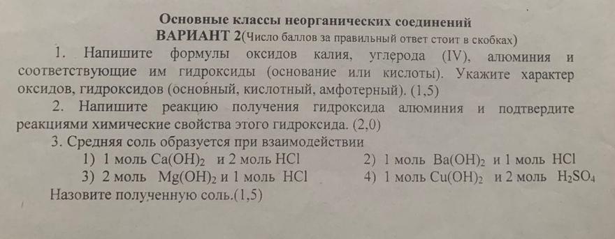 1. K2O (основный оксид)-KOH (гидроксид калия)