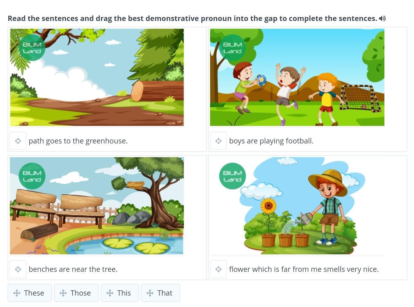 Read the sentences and drag the best demonstrative pronoun into the gap to complete the sentences;