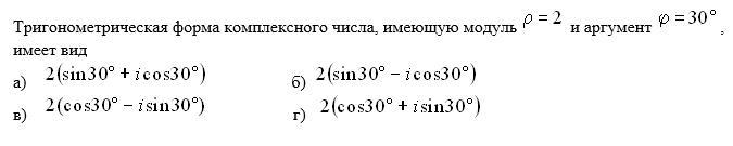 | z | = ρ = 2 ; arg z = φ = 30° , тоді z = 2 ( cos30° + i sin30° ) .