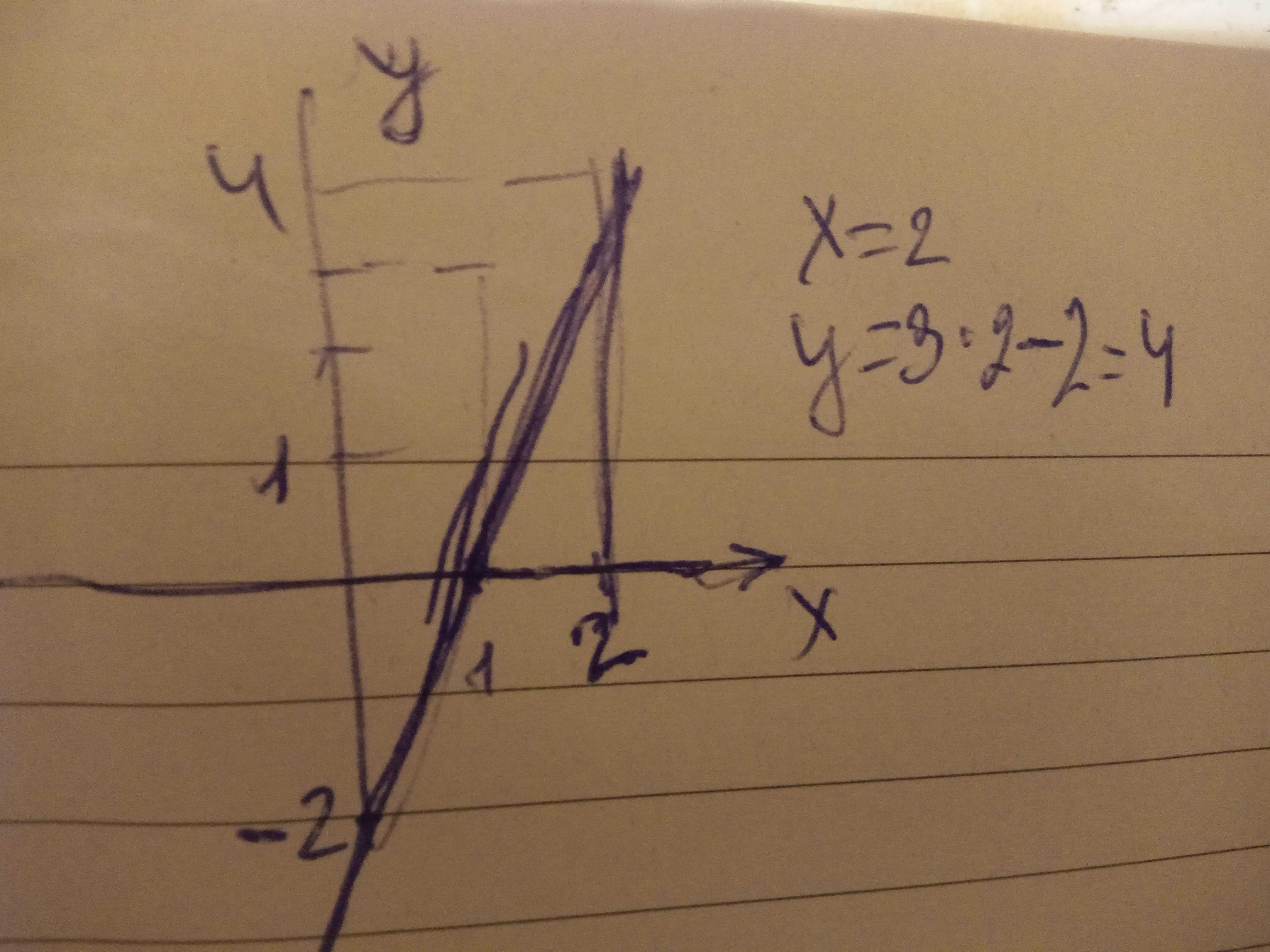 Побудуйте графік функції у = 3х – 2. Користуючись графіком, знайдіть:значення функції, що відповідає аргументу 2