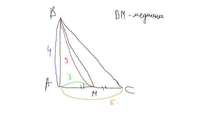 AB = √(BM^2 - AM^2) = √(5^2 - 3^2) = √(25 - 9) = √16 = 4 см