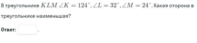пишешь: по теореме синусов: « против меньшего угла лежит меньшая сторона» т.е. меньший угол М, а значит меньшая сторона КL