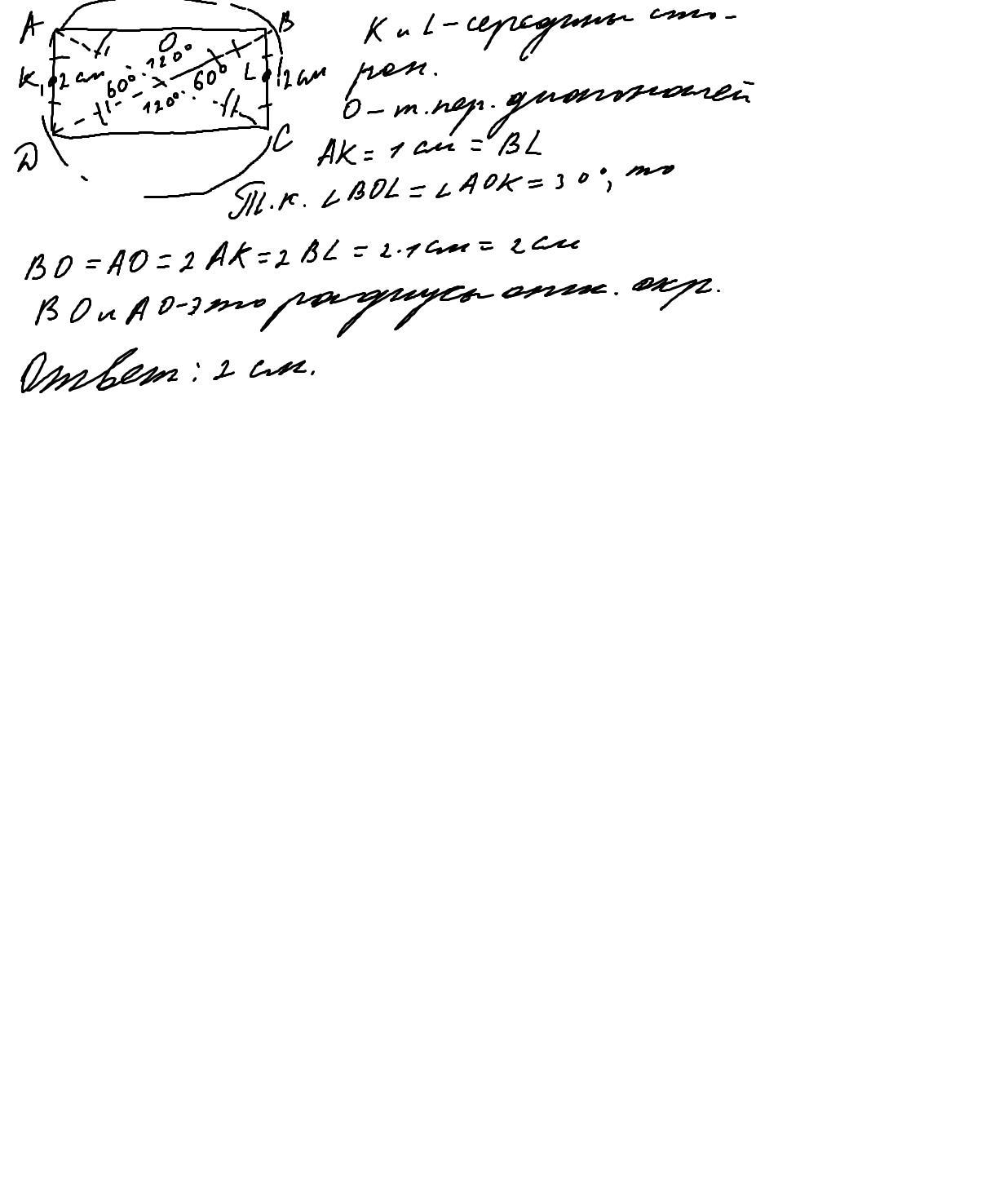 26. Меньшая сторона прямоугольника равна 2 см. Угол между диагоналями равен 60°. Найдите радиус описанной окружности. А) 2 см B) 1 см С) 2.5 см 13 D) 2 СМ E) 3 см