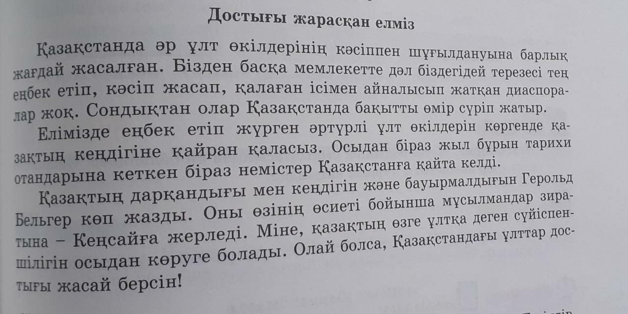 1)Қазақстанда әр ұлт өкілдерінің кәсіппен шұғылдануына барлық жағдай жасалған ба?