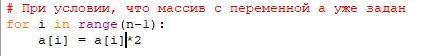 есть массив A из N элементов. запишите фрагмент программы который умножает все элементы на 2. помогите с этим пожалуйста. если что язык программирования питон