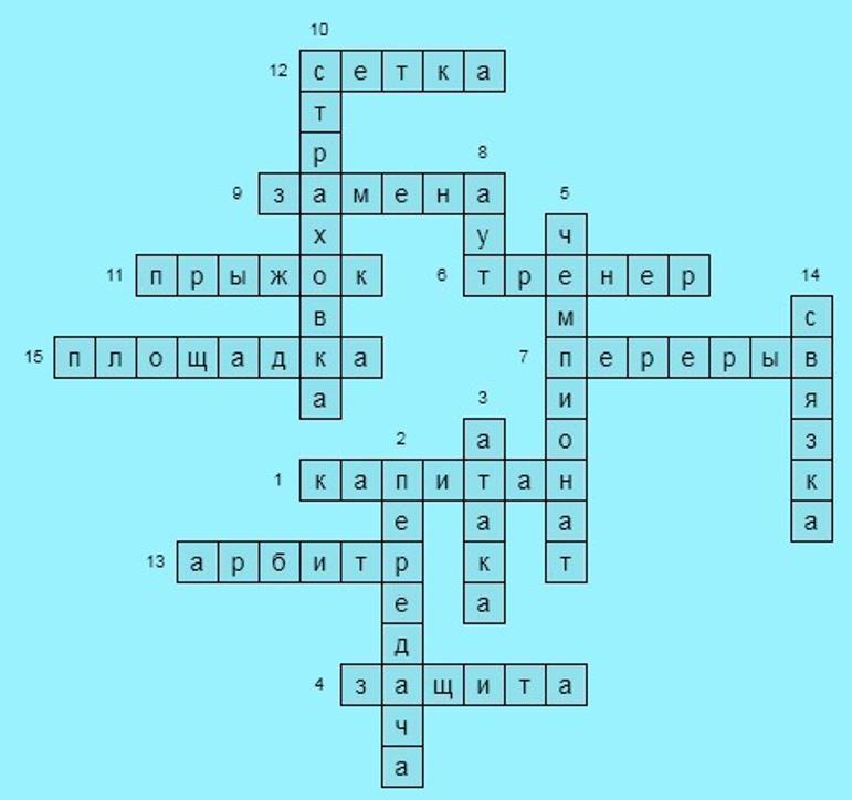 Составить кроссворд на тему "Волейбол". В кроссворде должно быть не менее 10 слов. Можно использовать главные термины, ключевые слова волейбола.