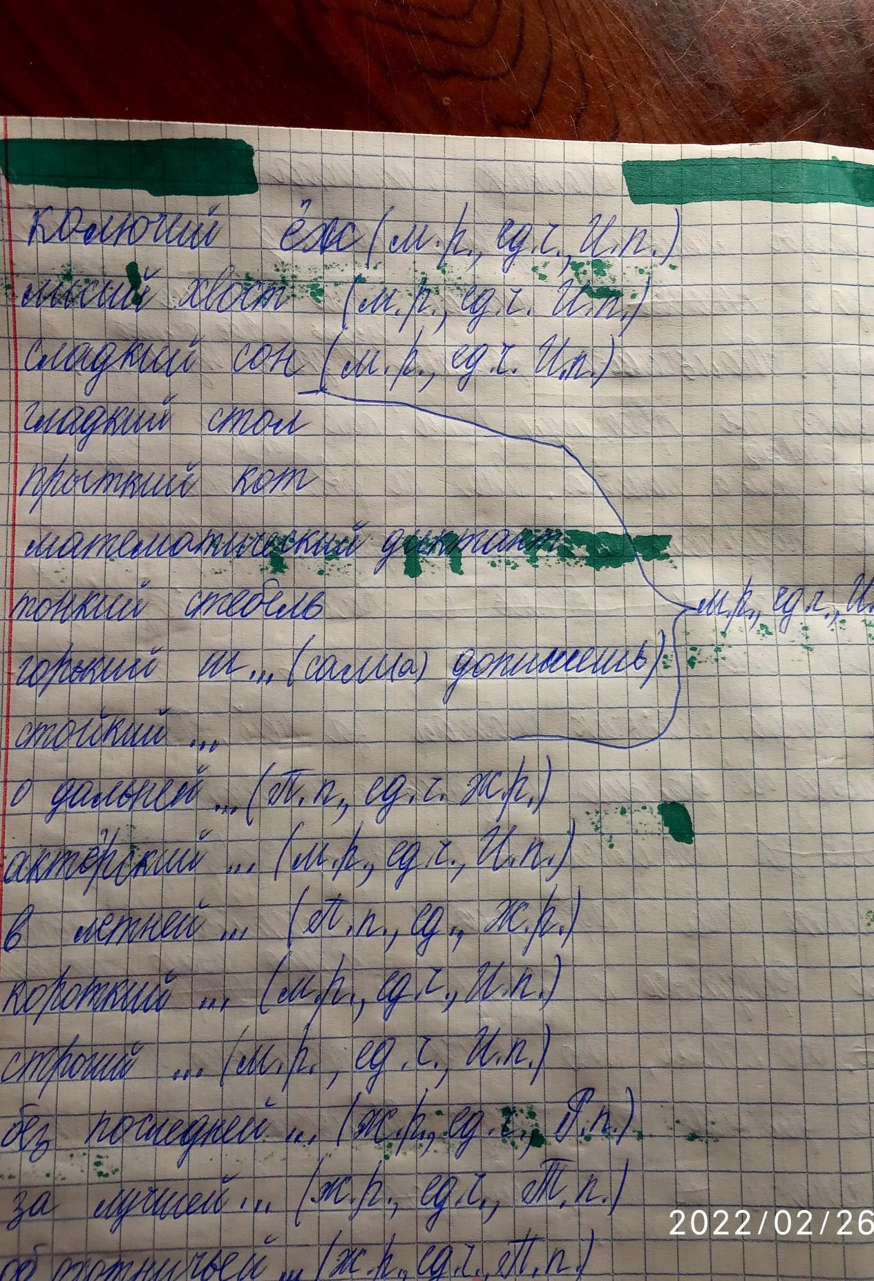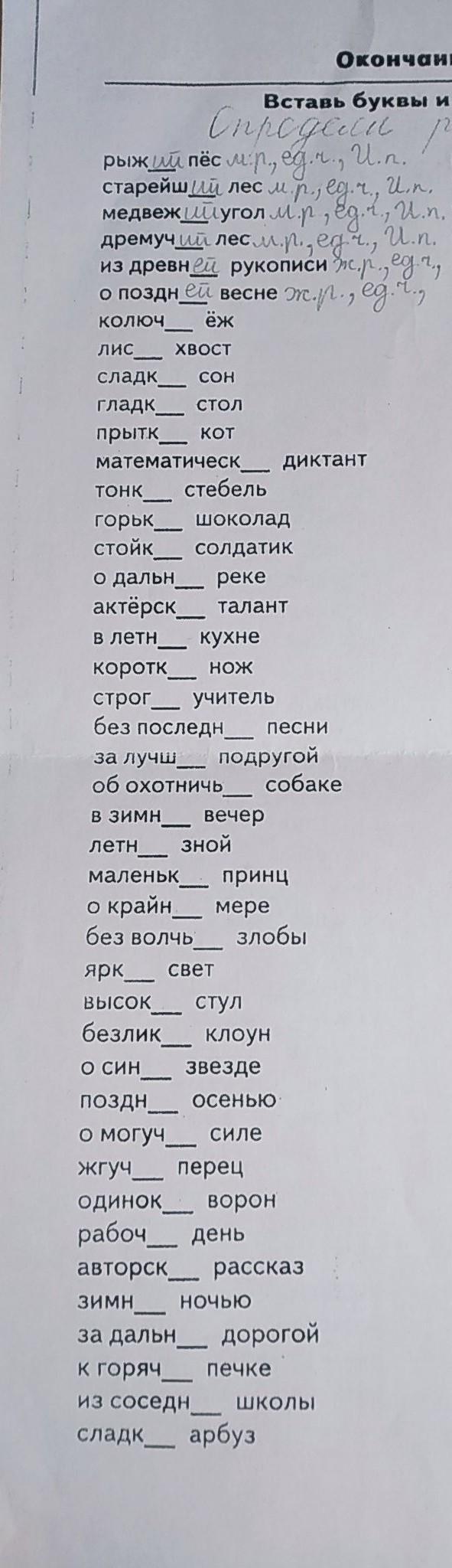 Вставь буквы и определи род, число, падеж: