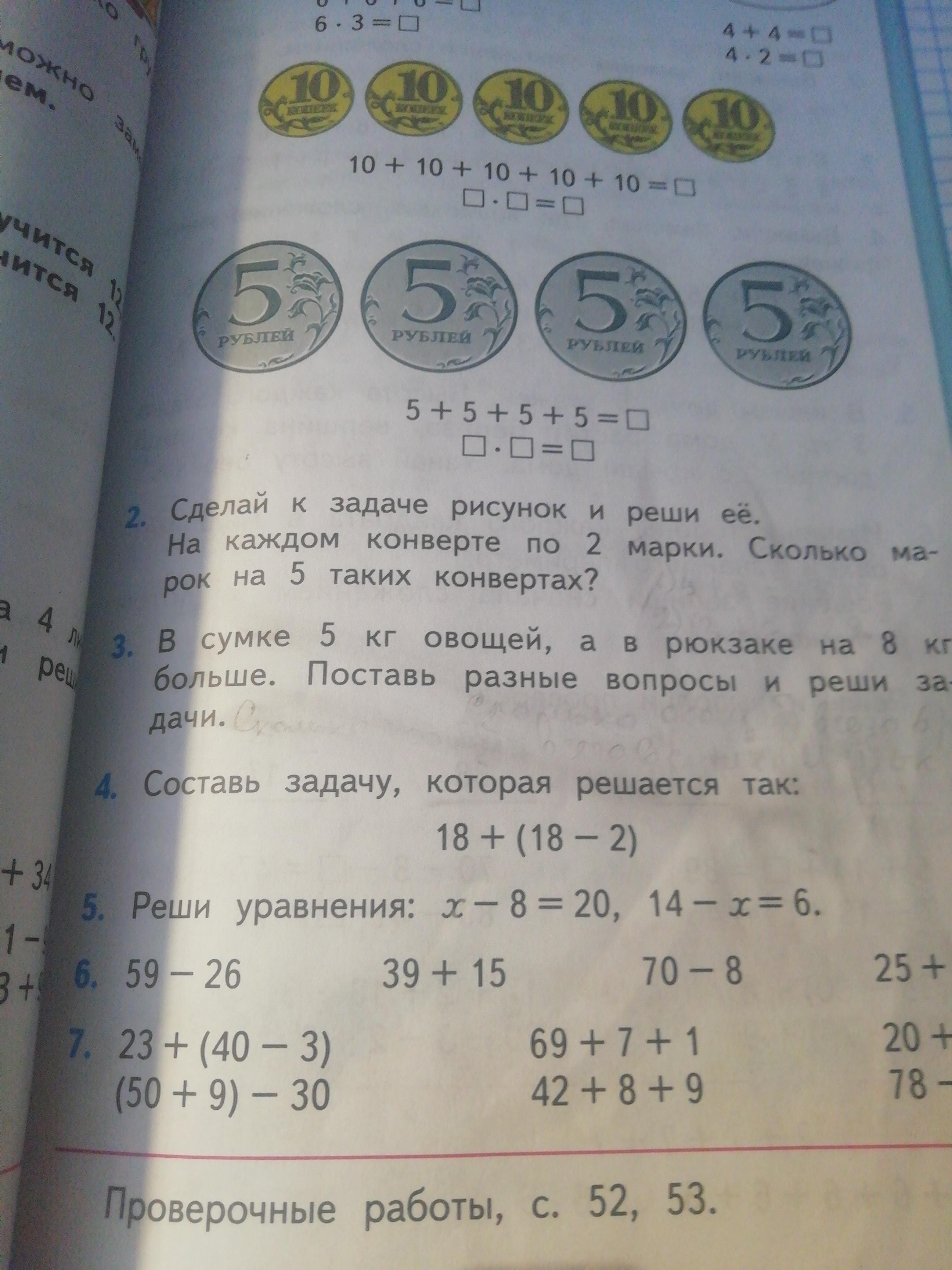 Допустим: 1 вопрос задачи будет сколько всего овощей в сумке и в рюкзаке вместе?