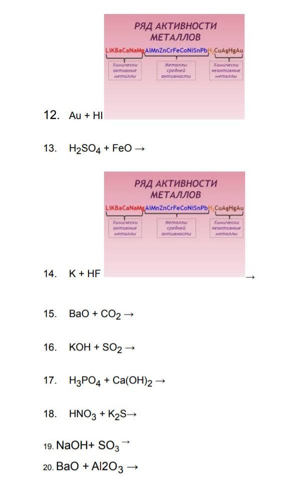 12. Au+HI= AuI+H2(газ)