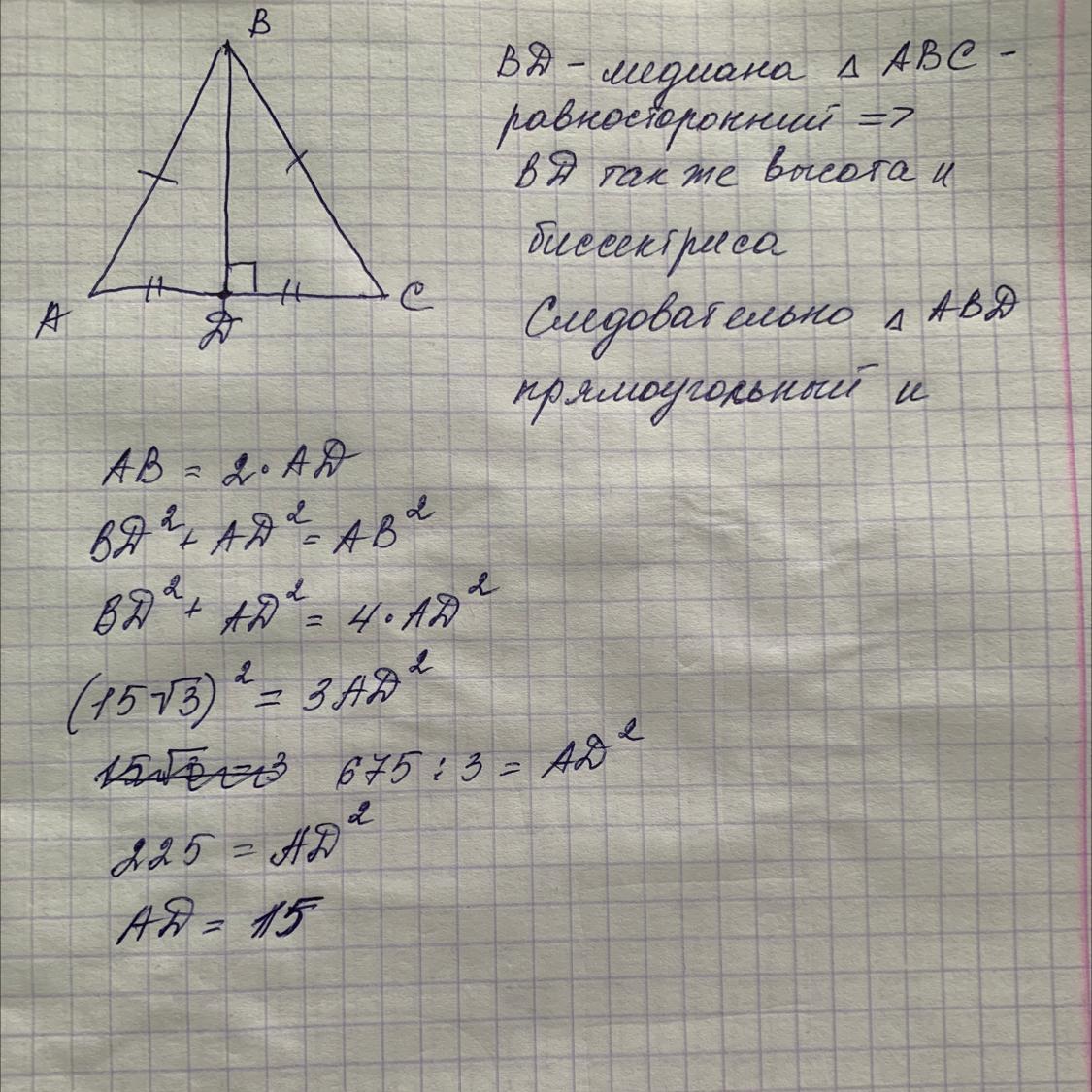 медиана равностороннего треугольника равна 15√3.найдите сторону этого треугольника