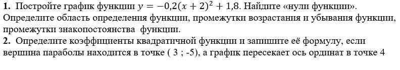2. Определить коэффициенты квадратичной функции и записать её формулу, если координаты вершины параболы (3; -5) и график пересекает ось Оу в точке 4 (это значение с).