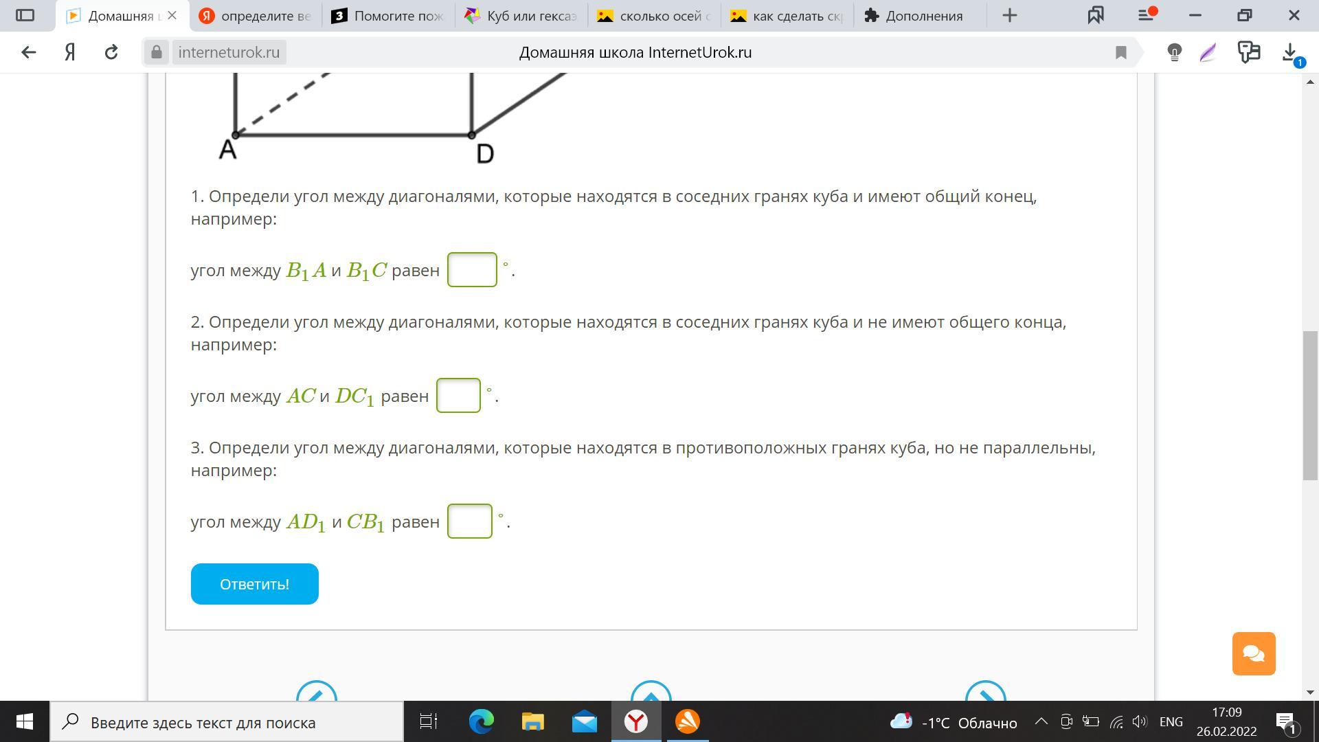 2.-3. Угол между скрещивающимися прямыми определяется как угол между пересекающимися прямыми, которые параллельны данным скрещивающимся прямым.