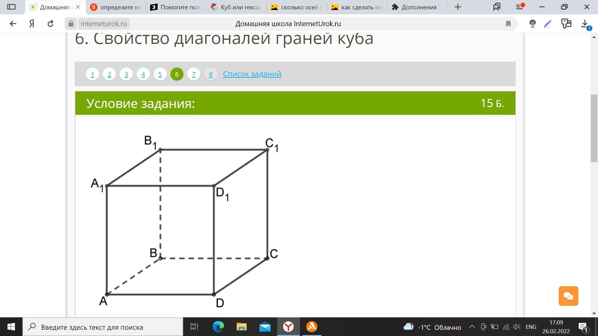1. Т,к. АС, В₁А и В₁С- равные диагонали равных квадратов, то они образуют равносторонний треугольник, в котором все углы равны 60°, в том числе и угол между В₁С и В₁А