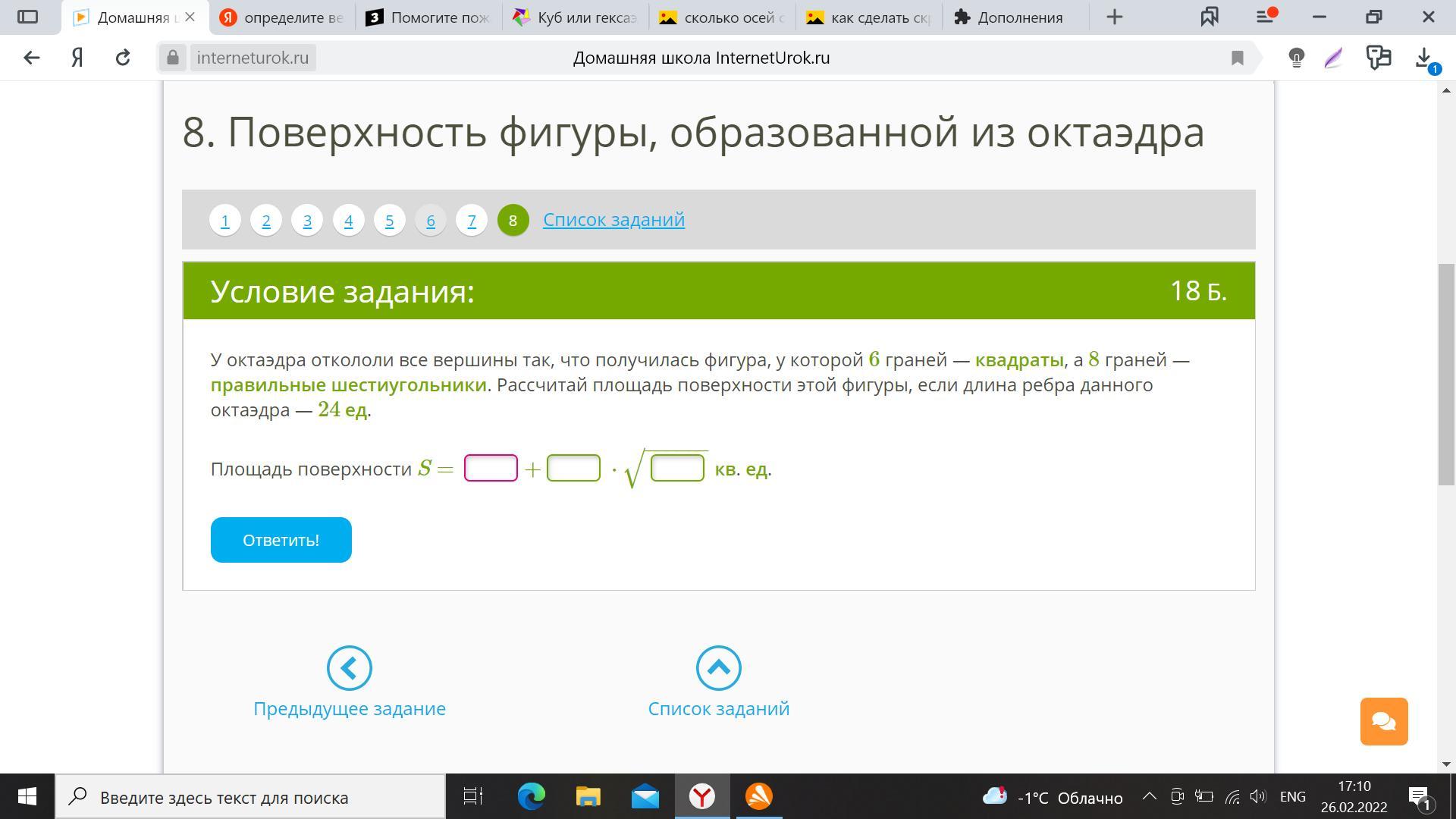 спасибо за подробный ответ, но к сожалению он не совсем верный(( правильный ответ:384+768(корень)3