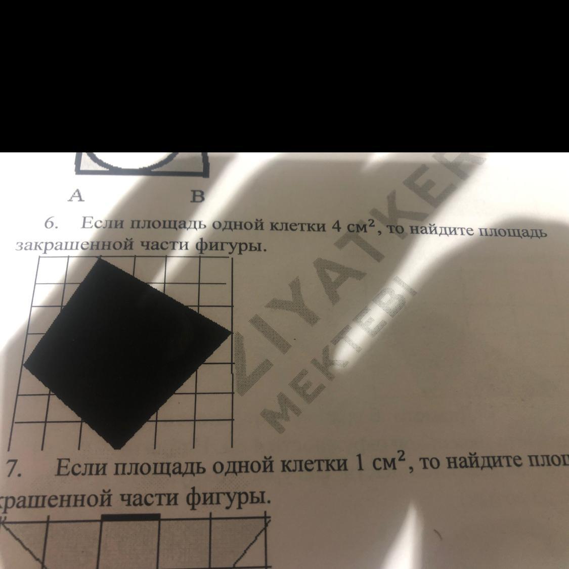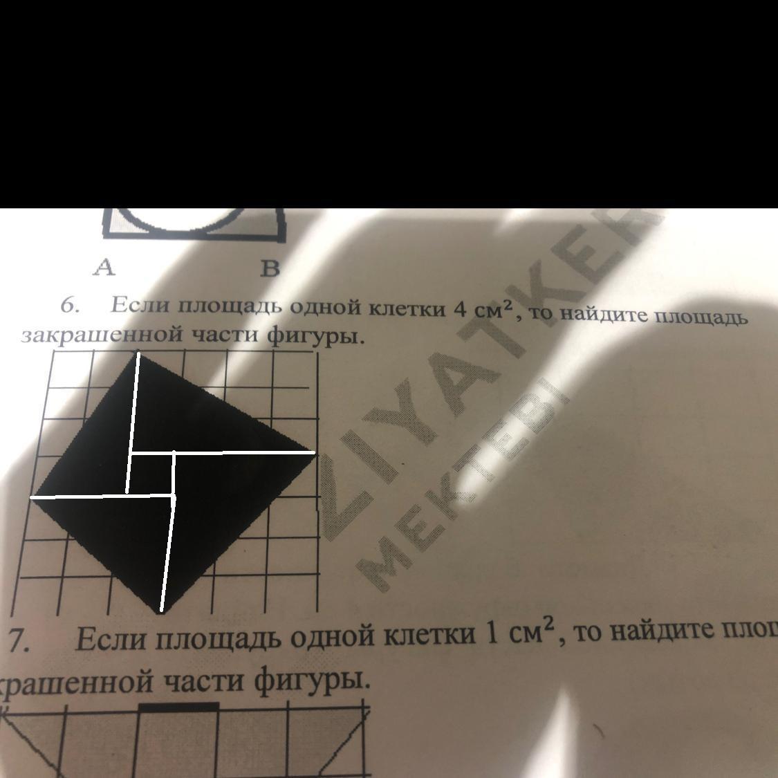 Площадь левого верхнего не закрашенного треугольника: (2 * 4 : 2) * 4 = 16 (см²)
