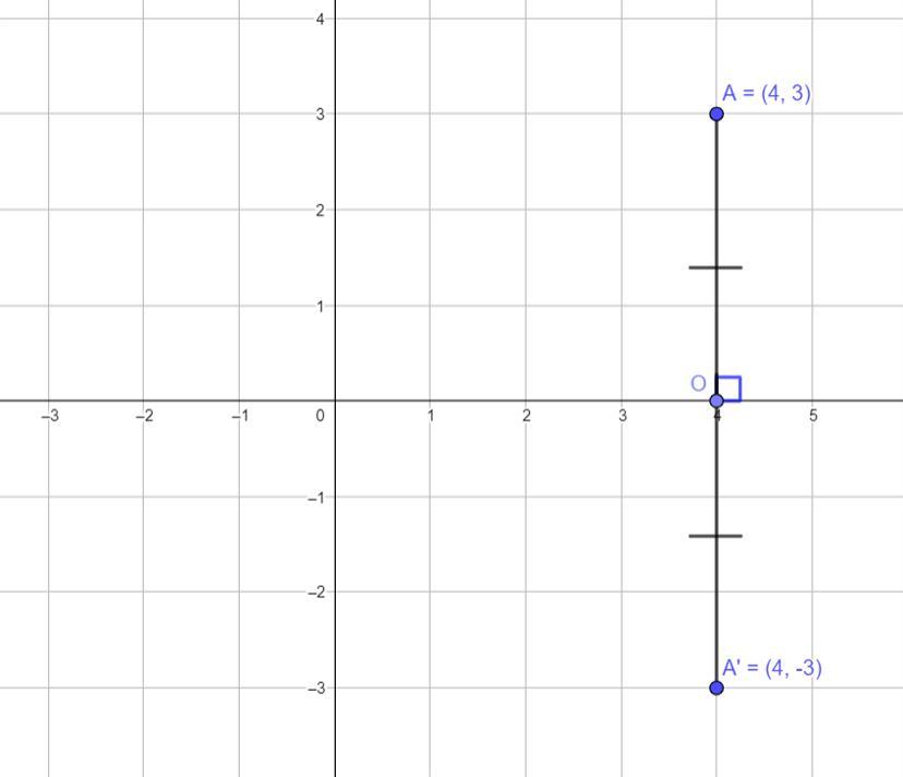 Найди координаты точки, на которую отображается точка A(4;3) при осевой симметрии относительно оси Ox