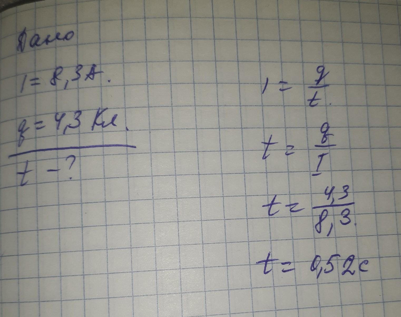 Сила тока в нагревательном элементе электрического чайника равна 8,3 А. За какое время через поперечное сечение нагревательного элемента протекает заряд 4,3 Кл?(на картинке )