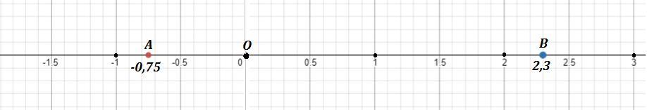 ПОМОГИТЕ ПОЖАЛУЙСТА!!!ОТМЕТЬТЕ И ПОДПИШИТЕ НА КООРДИНАТНОЙ ПРЯМОЙ ТОЧКИ А (-0,75) ; В(2,3) И Т.Д