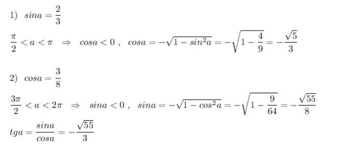 Найти cos a, е ли sin a = 2/3 и пи/2 < a < пи