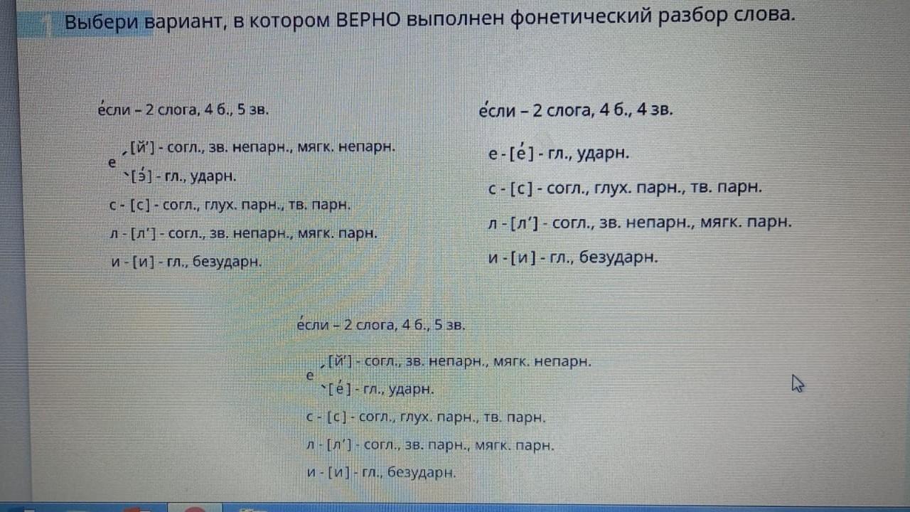 1 варианте ВЕРНО выполнен фонетический разбор слова