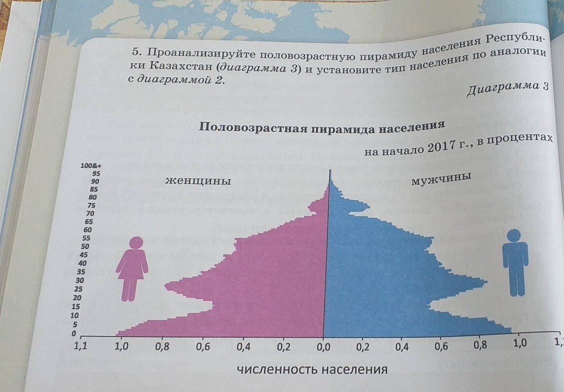 проанализируйте половозрастную пирамиду населения Республики Казахстан