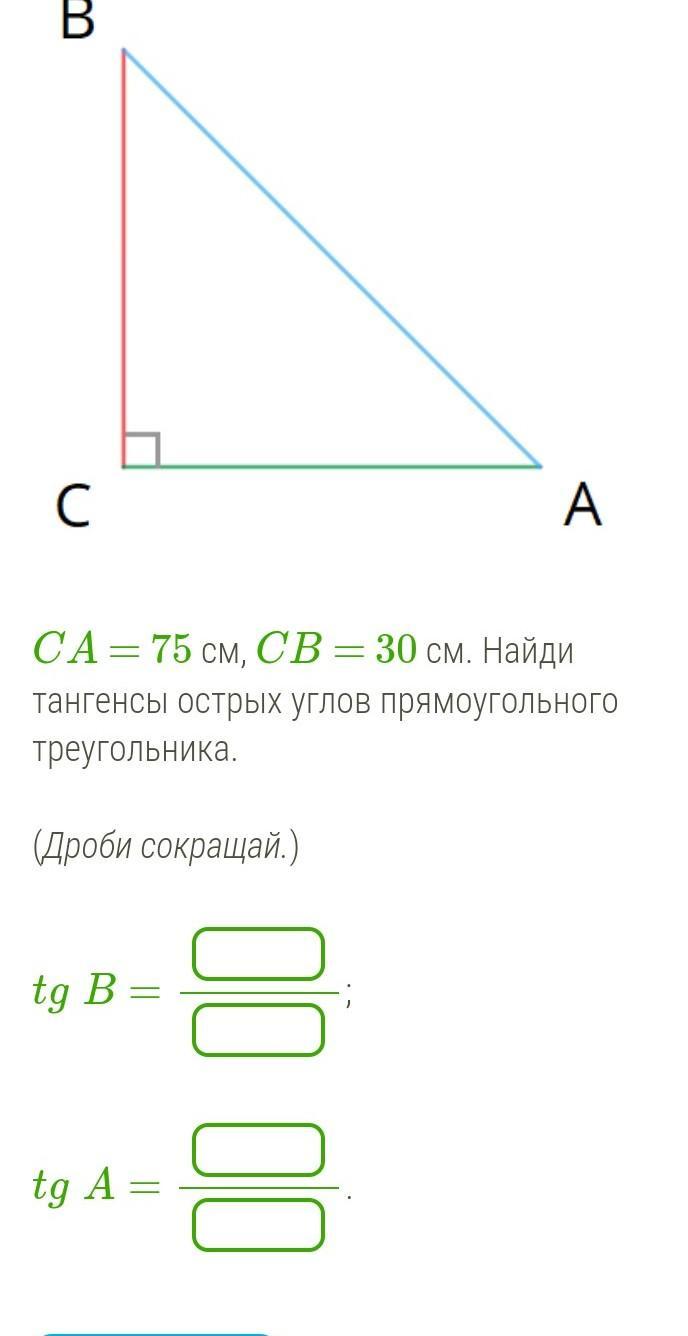 Тангенс - это отношение противолежащего катета к прилежащиму.