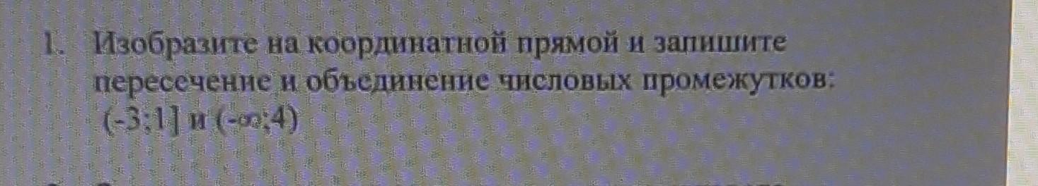 1. Изобразите на координатной прямой и запишите пересечение и объединение числовых промежутков: (-3:1] (-00:4)