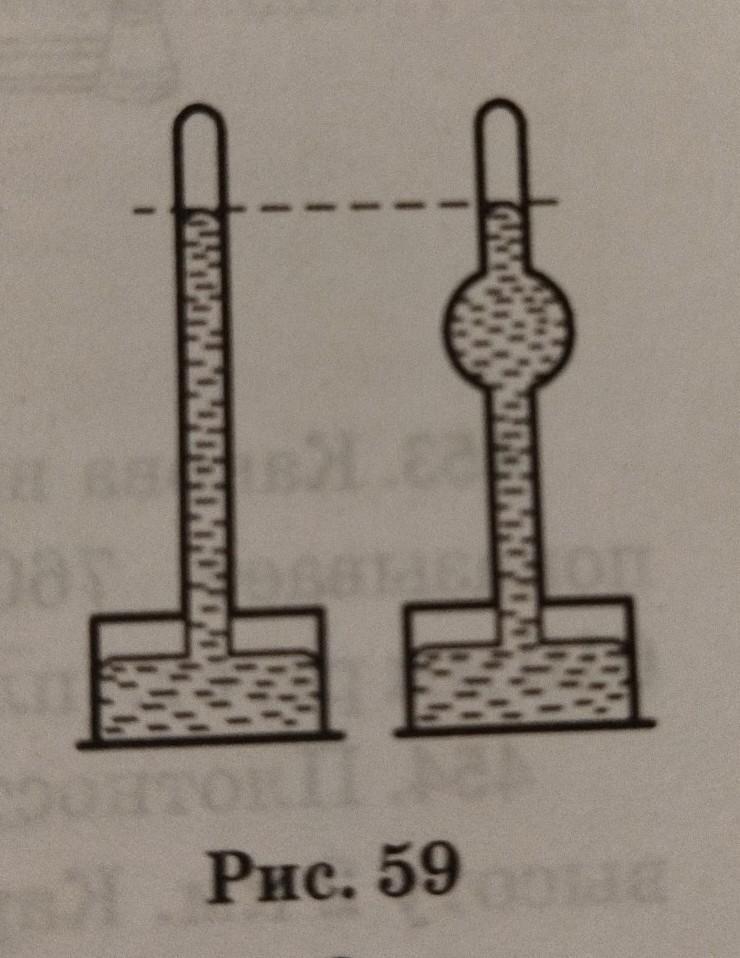 Трубка Торричелли в середине име- ет шарообразную форму (рис. 59). На какой высоте установится в ней уровень ртути, если в стоящей рядом прямой трубке ртуть находится на высоте 760 мм?