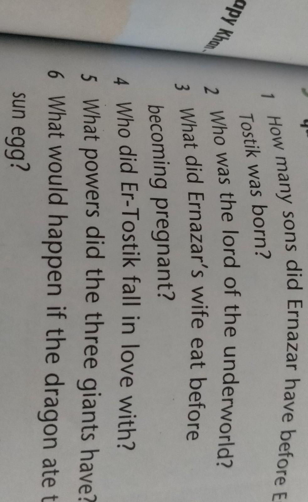 2 Who was the lord of the underworld? 3 What did Ernazar's wife eat before becoming pregnant?