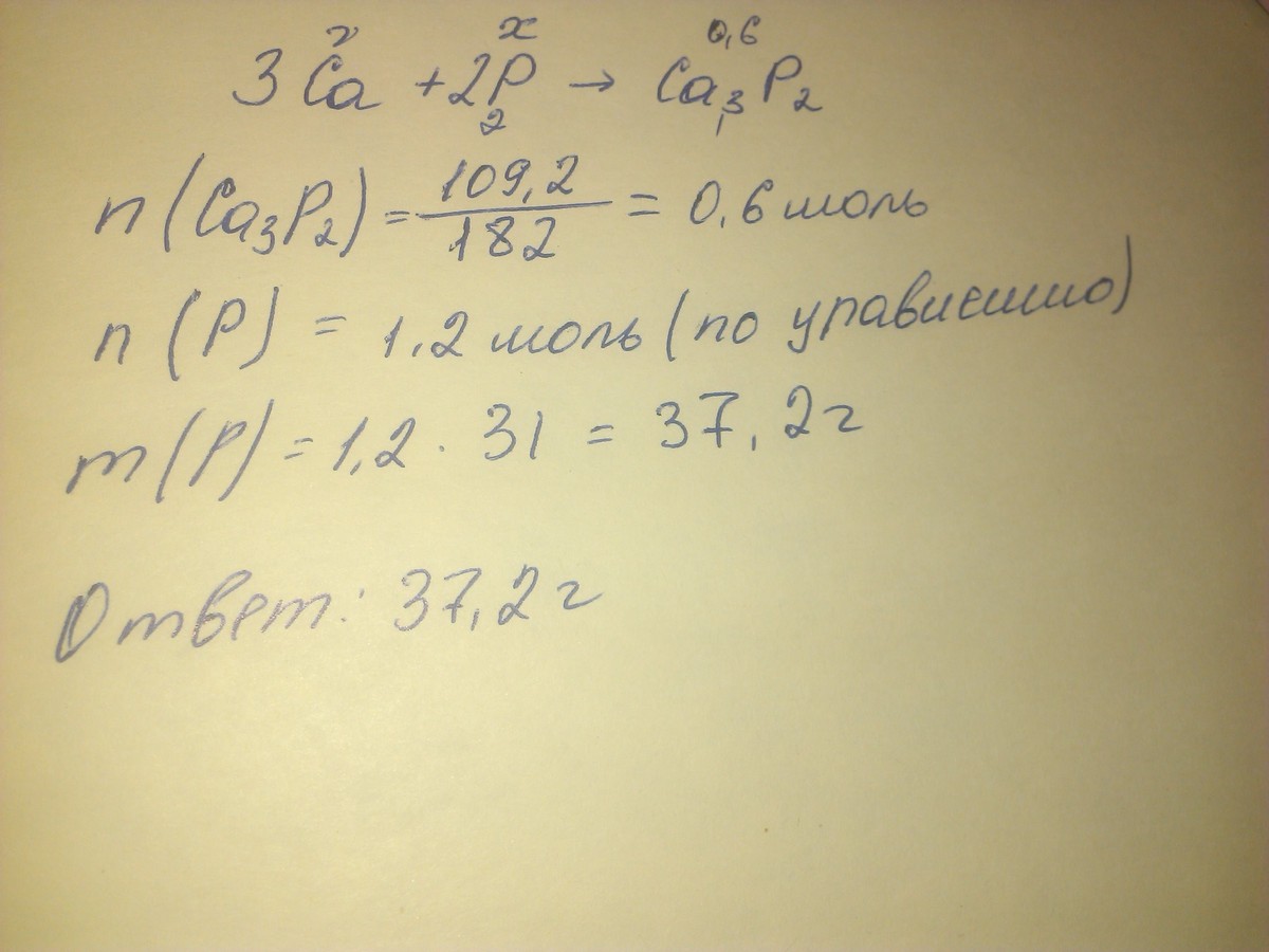 Какая масса фосфора (г) потребуется для взаимодействия с избытком кальция для образования 109,2 г продукта реакции?