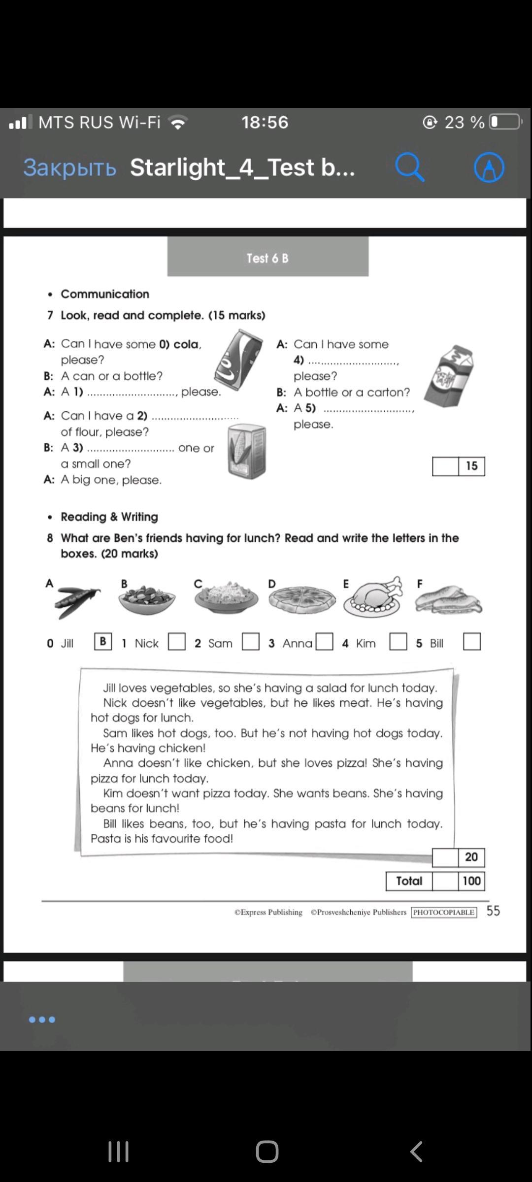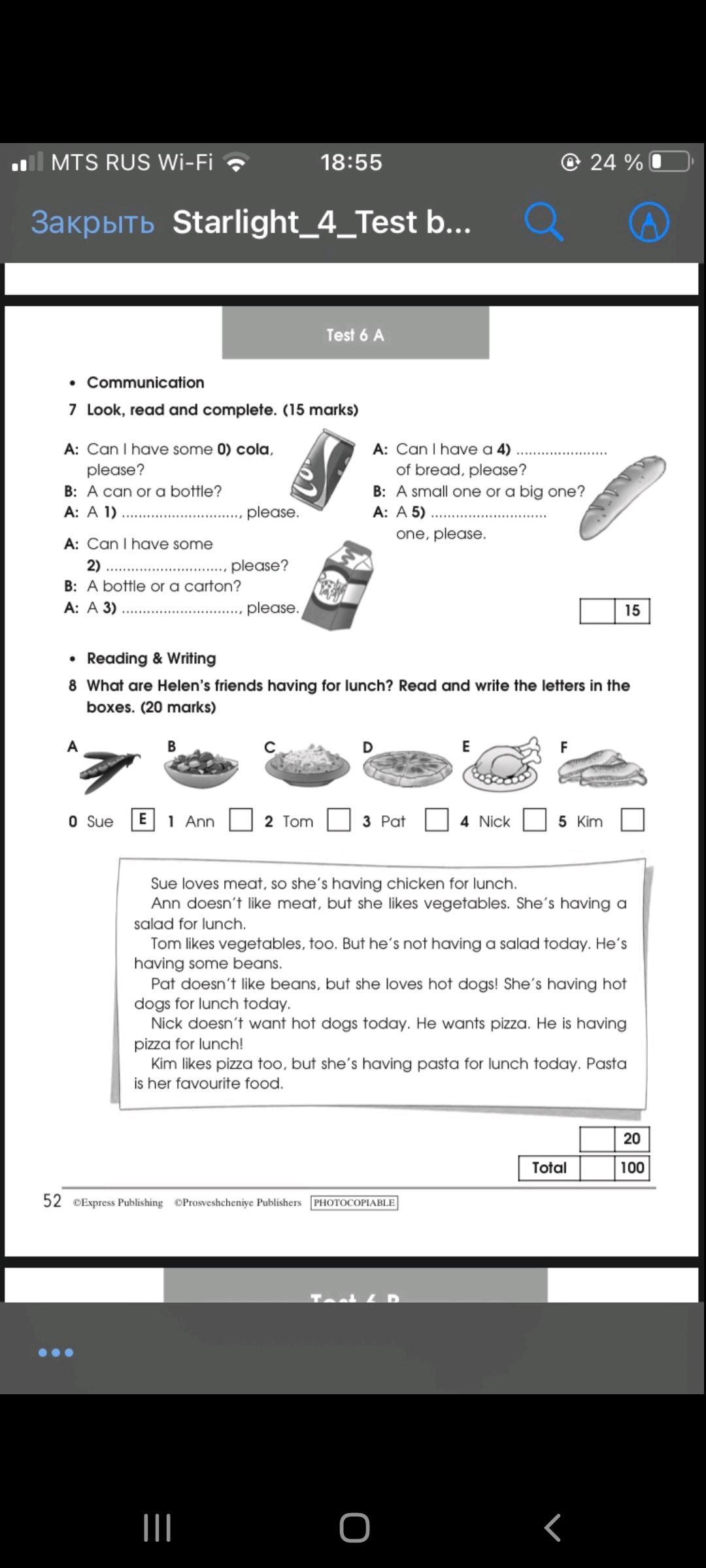 7. 1 can, 2 packet, 3 big, 4 milk, 5 carton