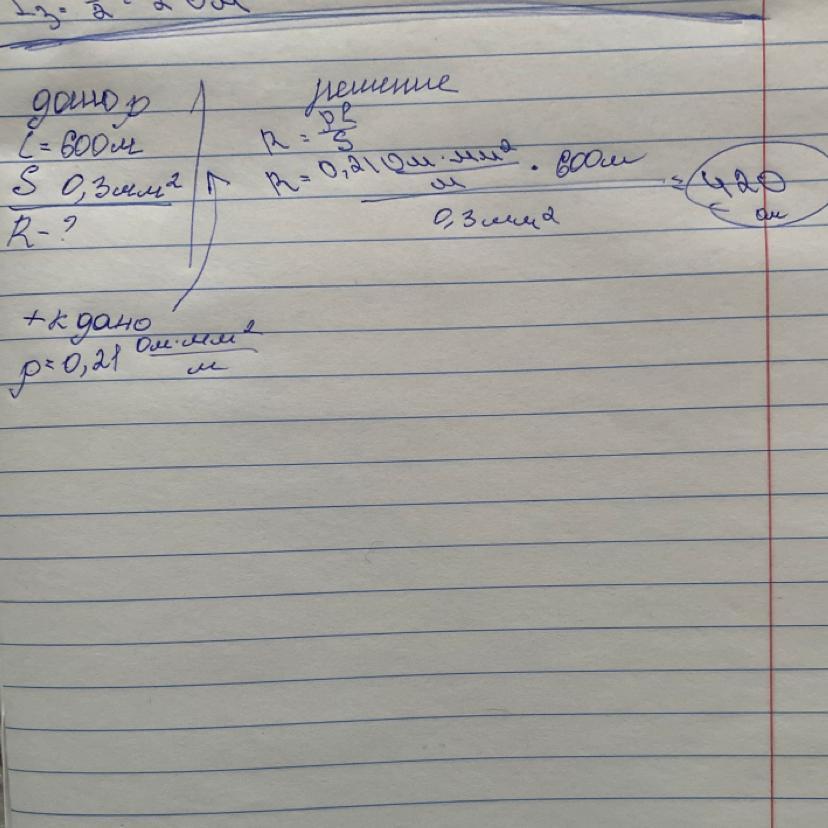 Длина свинцового провода 600м. Площадь поперечного сечения провода 0,3мм2. Определите сопротивление проводника