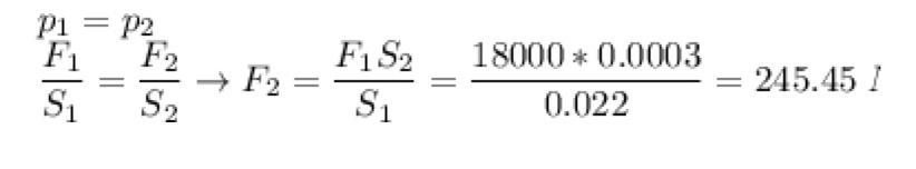 Поршень гидравлического пресса площадью 200 см действует на сдавливаемое тело с силой 18 кн. Площадь малого поршня - 6 см. Найди, с какой силой действует меньший поршень на масло в прессе. 2 Ответ (округли до десятых)