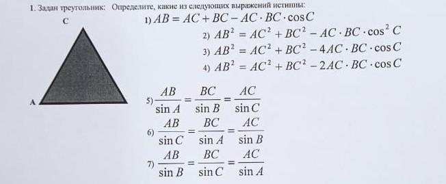 4)АВ²=АС²+ВС²-2*АС*ВС*cosС- это теорема косинусов.