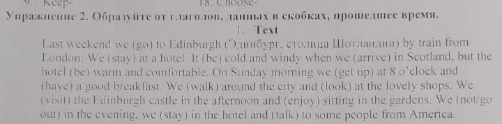 Last weekend we went to Edinburgh by train from London. We stayed at a hotel. It was cold and windy, when we arrived in Scotland, but the hotel was warm and comfortable. On Sunday morning we got up at 8 o'clock and had a good breakfast. We walked around the city and looked at the lovely shops. We visited the Edinburgh castle on the afternoon and enjoyed sitting the gardens. we didn't go out in the evening, we stayed in the hotel and talked to some people from America.