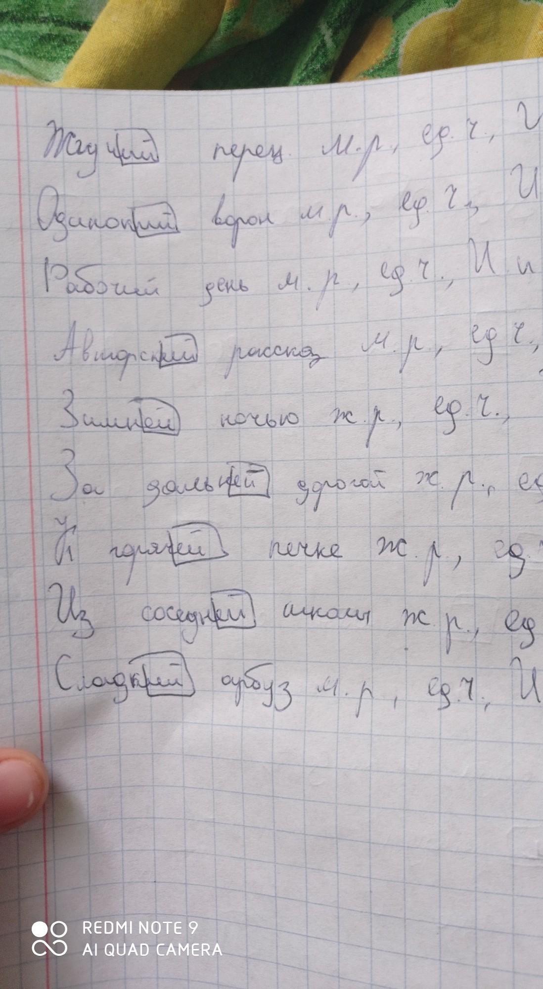 Вставь буквы и определи род, число, падеж