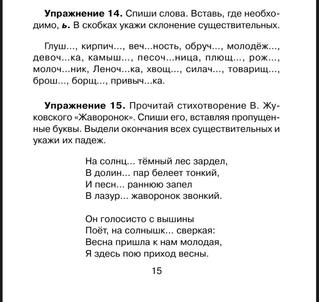 в существительных 3 склонения после шипящих на конце пишется мягкий знак