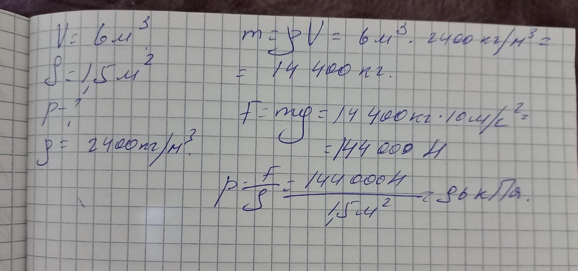p=ρVg/S=2600×6×10/1.5=104000 (Па)
