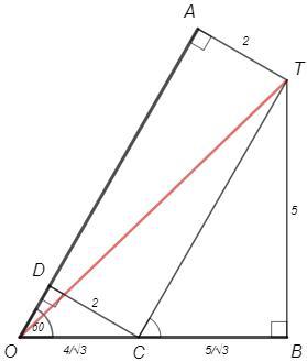 Проведем TC||AO, CD=TA=2 (расстояние между параллельными постоянно)