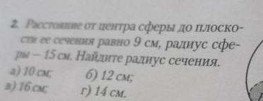 Рисунок знаю какой, у вас он есть, а чтобы найти радиус сечения, надо от квадрата радиуса сферы отнять квадрат расстояния до плоскости сечения от центра сферы и из результата извлечь корень квадратный