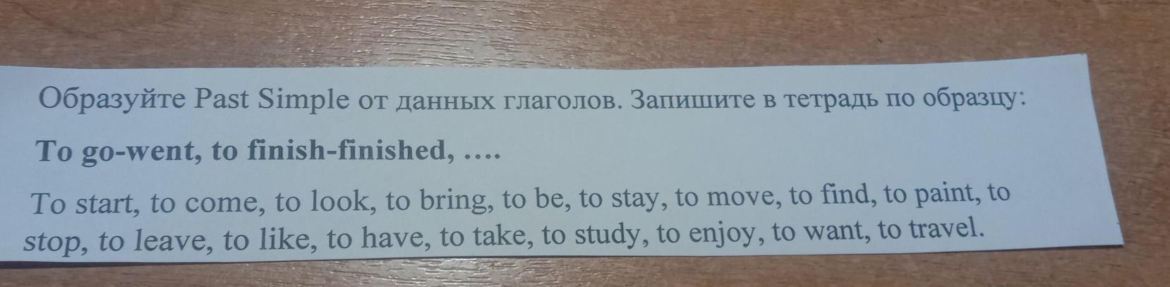 Образуйте Past Simple от данных глаголов. Запишите в тетрадь по образцу: To go-went, to finish-finished, (прошу помогите пожалуйста