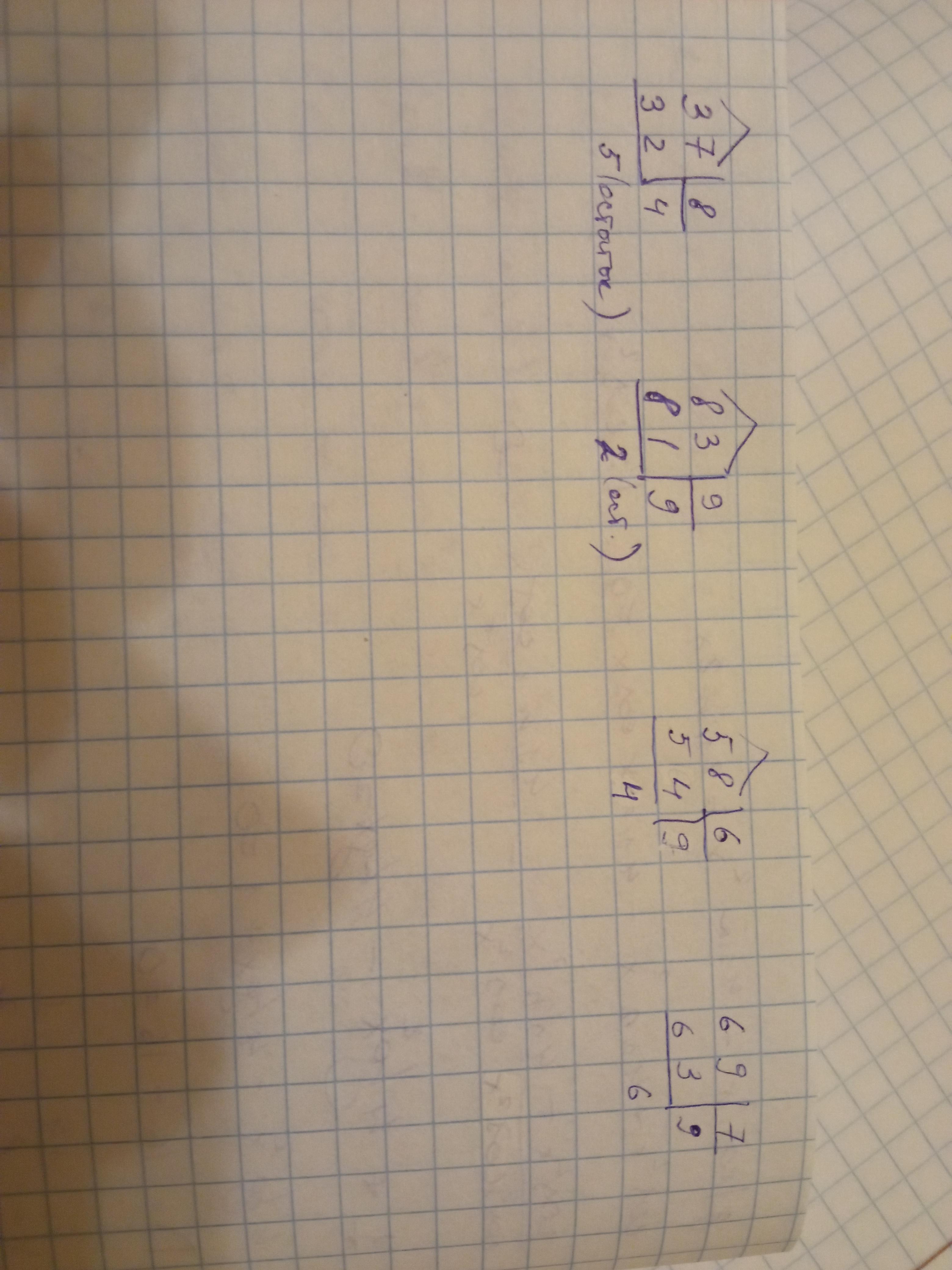 1) 37:8=4 2) 83:9=9 3) 37:12=3 4) 58:6=9 5) 69:7=9
