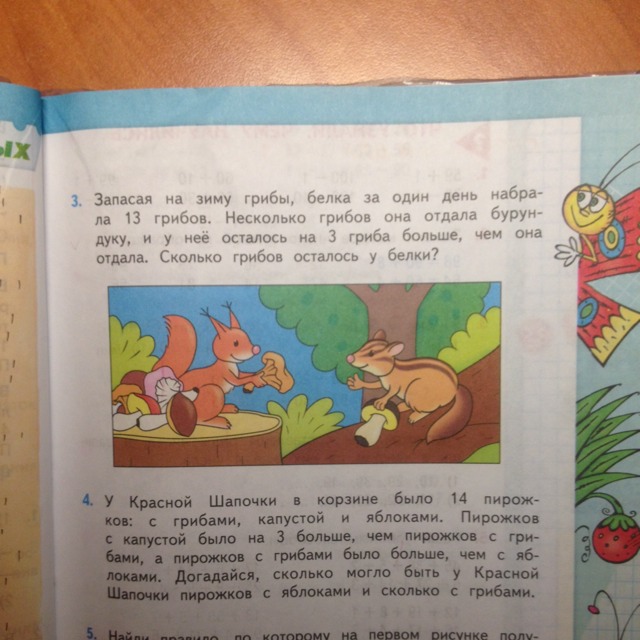 Пусть количество грибов отданных бурундуку х, тогда х + 3 грибов осталось, можно составить уравнение