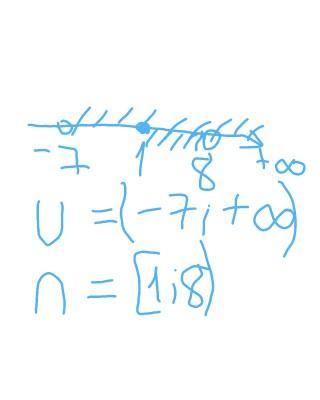 Походу понятно. там объединение (-7;+∞). Пересечение [1;8). Не думаю что это правильно