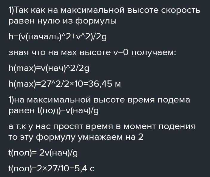Решить задачу: Мяч брошен вертикально вверх с начальной скоростью 10 м/с. Зависимость расстояния h (м) от мяча до земли от времени полета t(с) выражается формулой h = -5t² + 10. Найдите 1) Какой наибольшей высоты достигнет мяч? 2) За какое время мяч достигнет наибольшей высоты? 3) В какой промежуток времени он поднимался вверх и в какой опускался вниз? 4) Через сколько секунд после броска мяч упадет на землю?