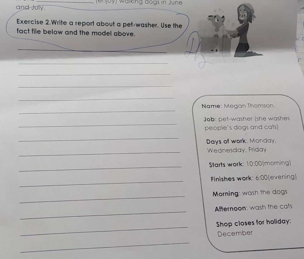 As for dog and cat washer Megan Thomson. He loves his job and can communicate well with animals. His working days: Monday, Wednesday, Friday. Its work will begin at 10.00 (morning) and end at 6.00 (evening). He often kills dogs in the morning and washes cats in the evening. One such day was a holiday in December. The laundry shop closed on the holiday.