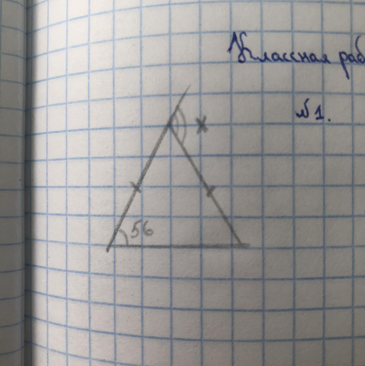 <3 = <2 = 56°, т.к. треугольник равнобедренный, а в нем углы при основании равны