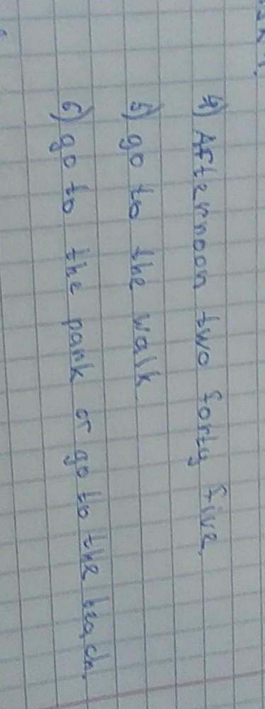 3. the right time they most likely to leave 4. activity the girl wants to do later 5. activity the father suggests them do at the end of the day